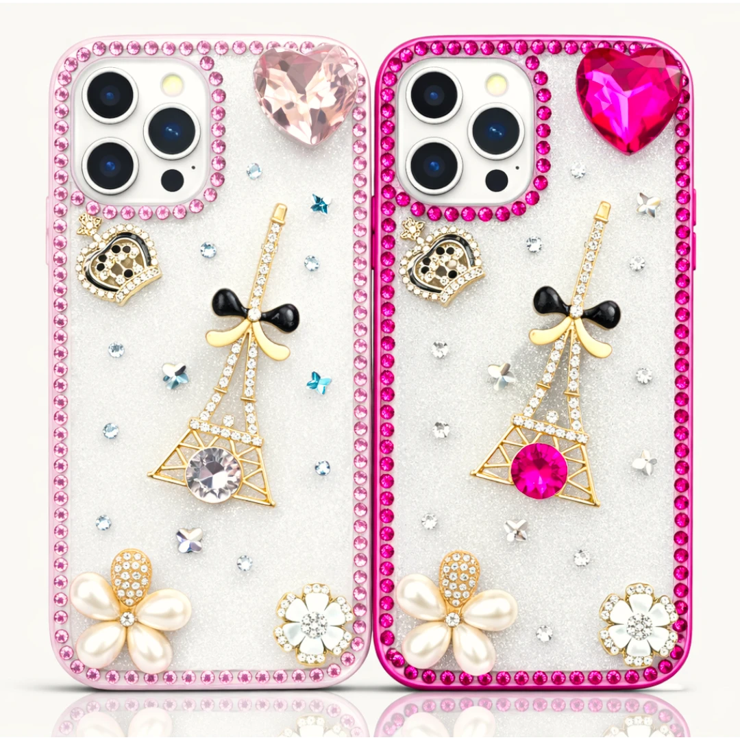 Give your iPhone 12/13/14/16 Pro Max a glamorous Parisian makeover with this Luxury Pink Crystal Eiffel Tower Case. Designed for fashion lovers who prefer their accessories loud, sparkly, and unapologetically extra, this case features: