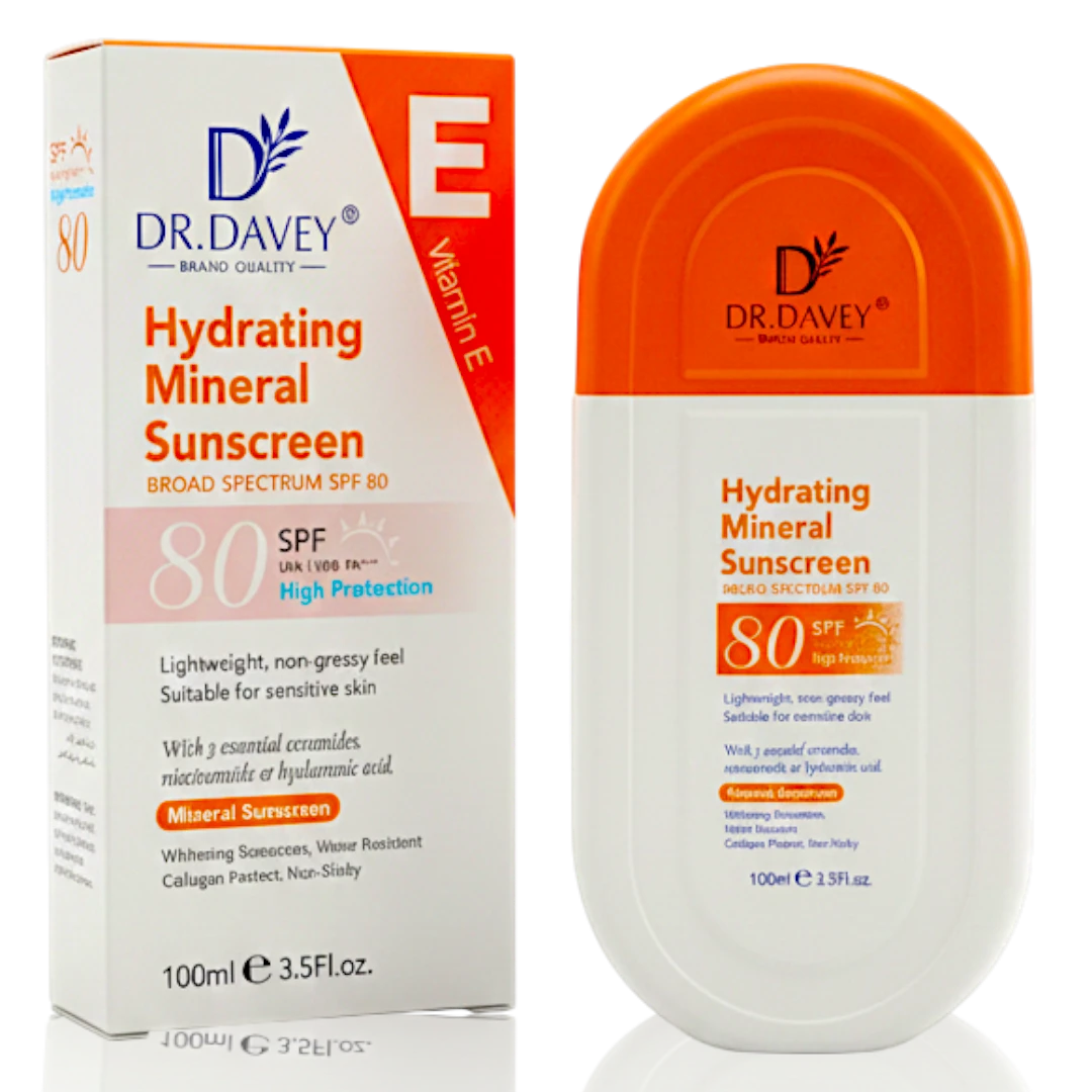 Experience superior sun protection with the DR. DAVEY Hydrating Mineral Sunscreen SPF 80.