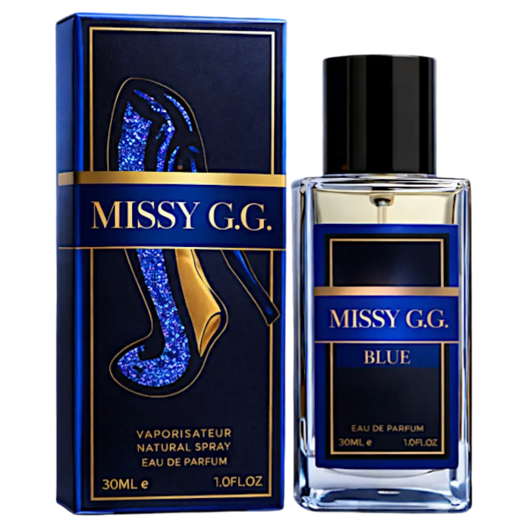 Missy G.G. Blue embodies elegance and calm sophistication. With fresh citrus, white florals, and a woody musky base, it delivers a clean yet powerful aura perfect for everyday confidence.