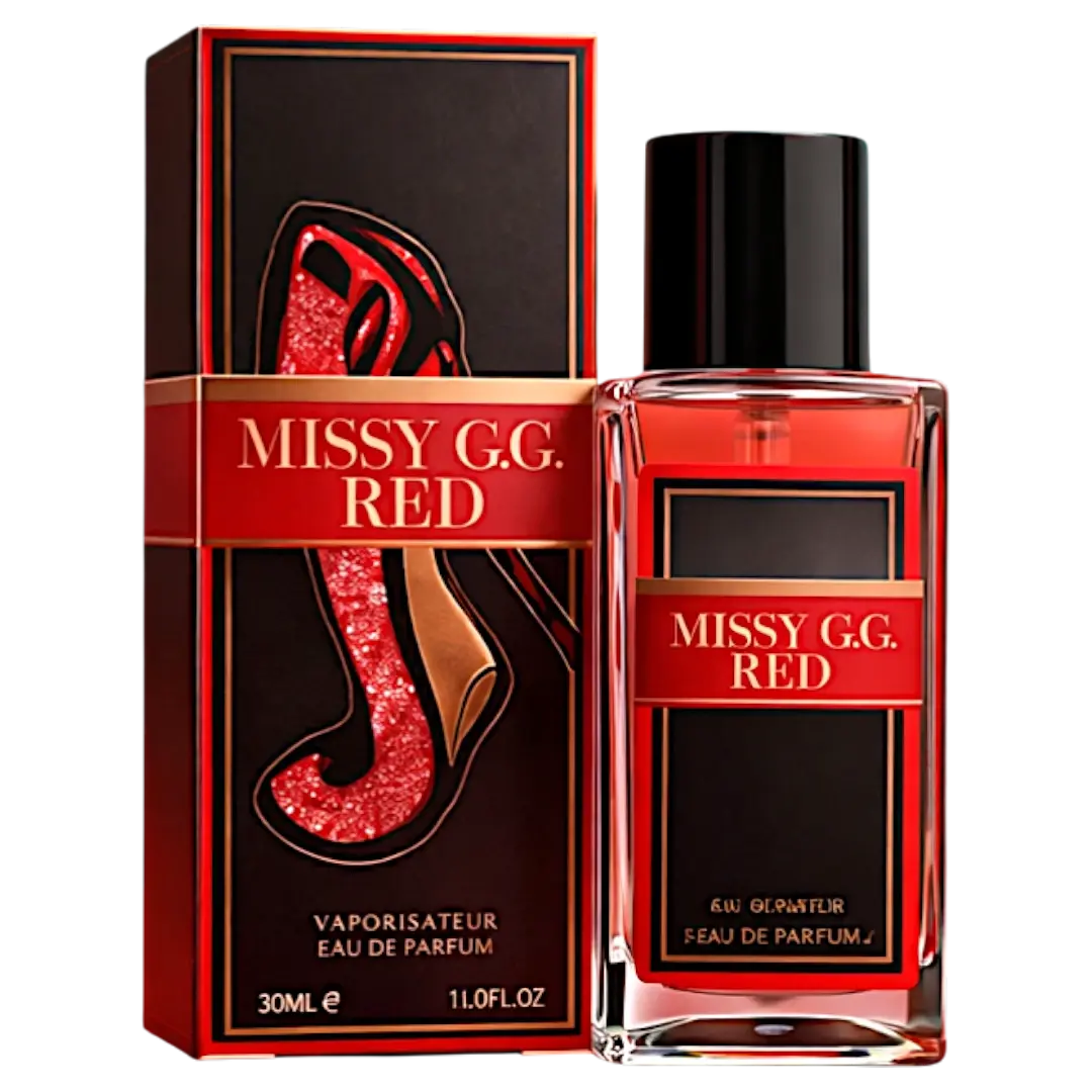 Missy G.G. Red is bold and captivating. Its warm floral oriental profile blends red fruits, rose, vanilla, and amber to create an unforgettable signature scent that commands attention.