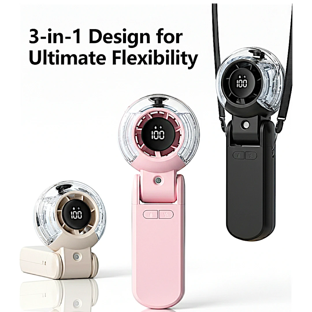 This fan is designed for maximum versatility. Its 180° foldable design allows it to transform from a handheld unit to a hands-free neck fan or a stable desktop fan in seconds. Equipped with a high-definition LED display, you can monitor your wind speed and battery life in real-time, ensuring you never run out of a breeze when you need it most.