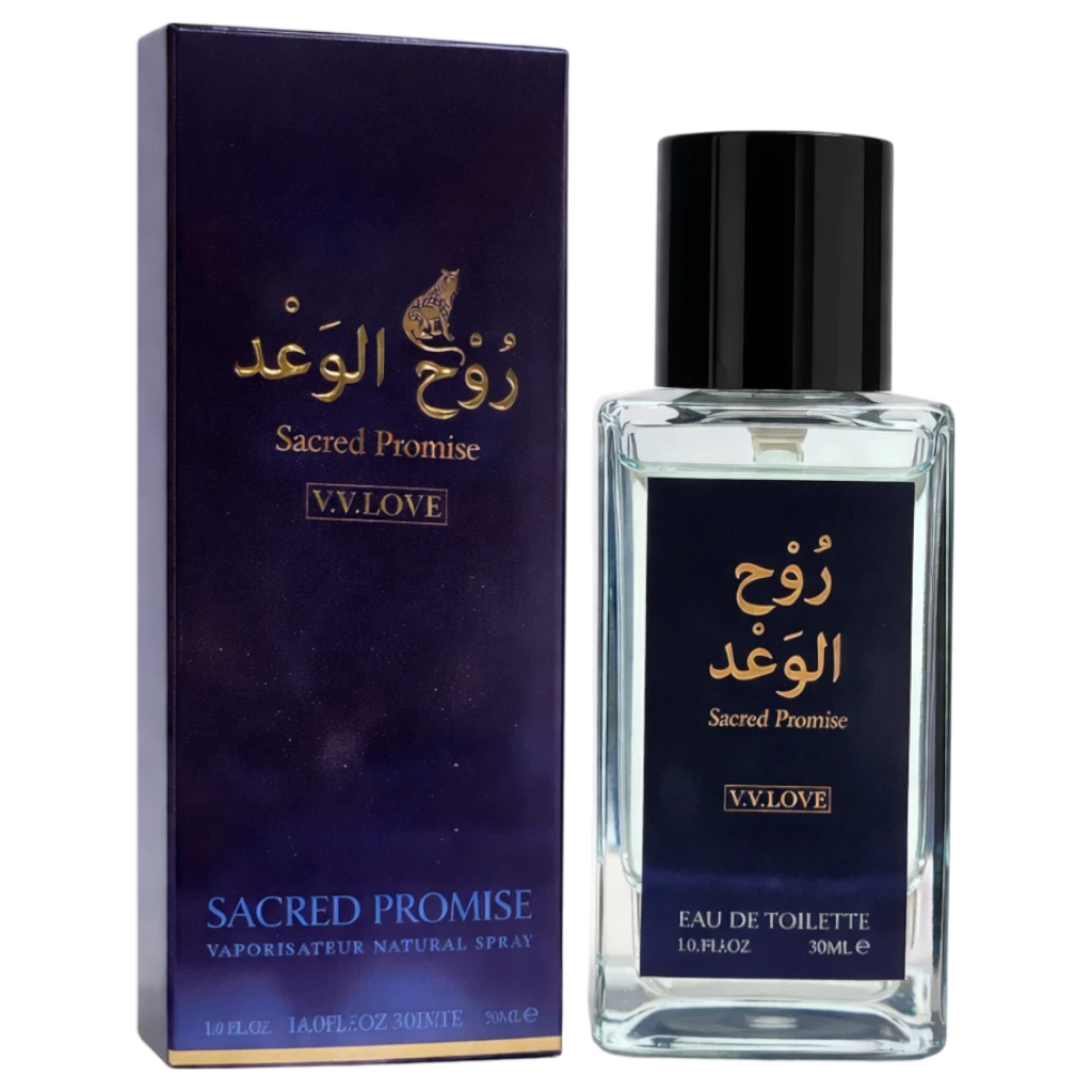 V.V. Love Sacred Promise (روح الوعد – Soul of the Promise) is a warm and expressive oriental Eau de Toilette perfume crafted for confident men who appreciate depth and presence.