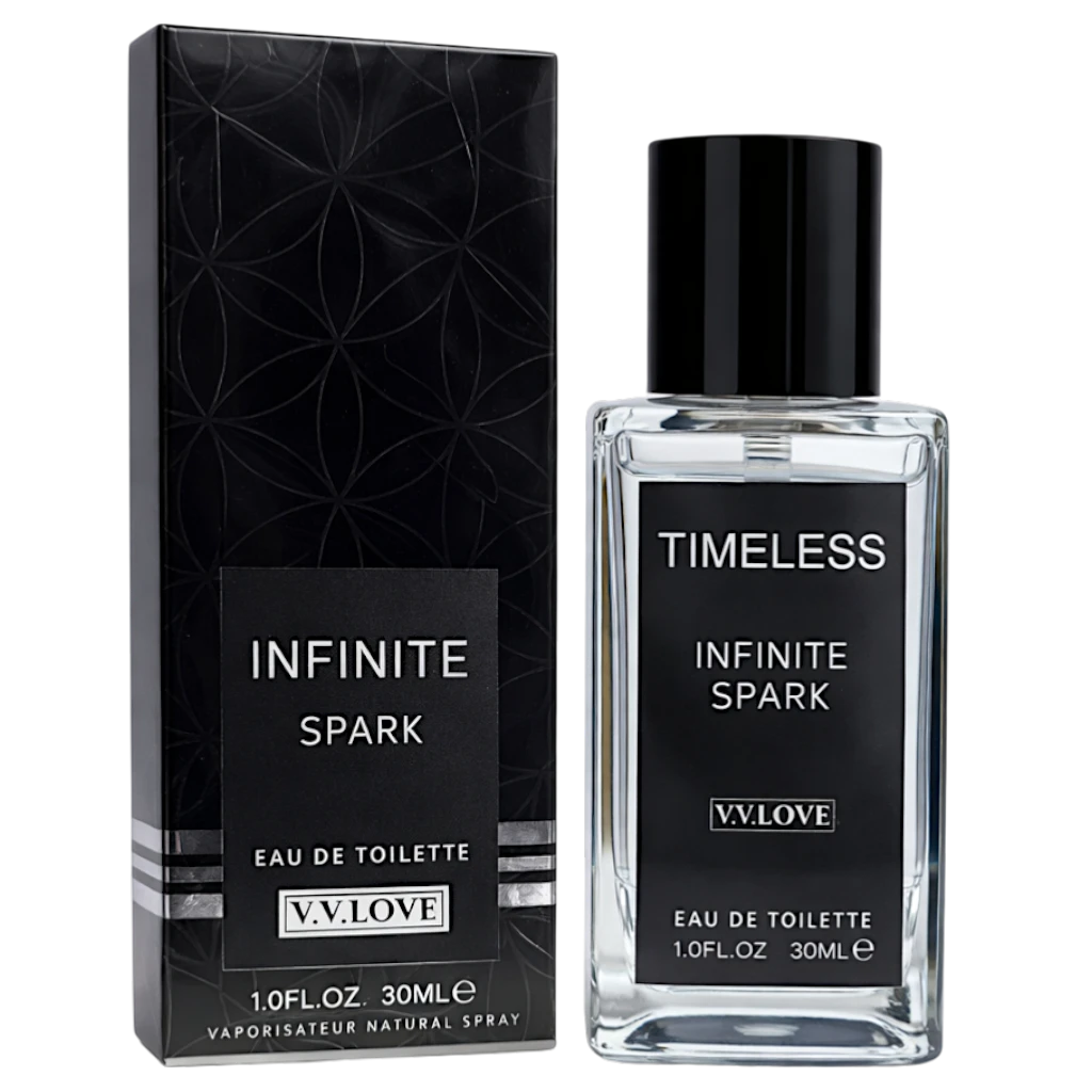 As the scent evolves, it settles into a refined base of tonka bean absolute, smooth vanilla, dry cedar, and a subtle suede accord. The result is a fragrance that transitions seamlessly from energetic daytime freshness to warm evening depth. Timeless Infinite Spark is structured for versatility — suitable for office wear, casual settings, and confident daily presence.